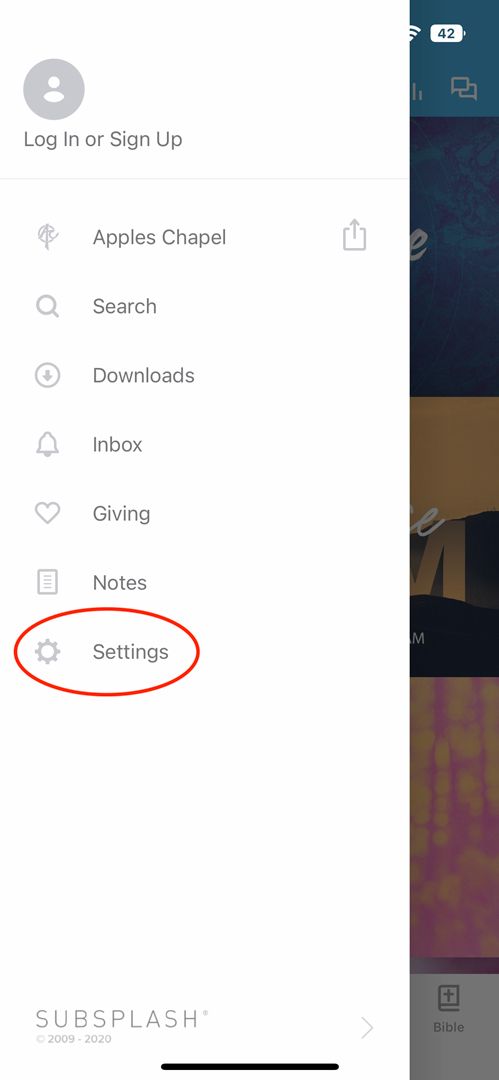 3) Turn on Notifications. This needs to be done in 2 places, within the Apples Chapel app and in your device settings. Follow the screenshots below to enable Notifications in the Apples Chapel app.