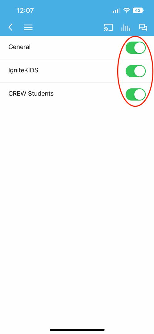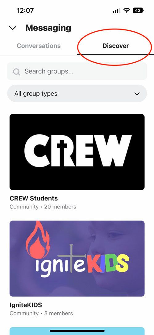 We will be using our mobile app to communicate within our groups & teams. This will include Small Groups, CREW Students, IgniteKIDS, and volunteer teams. This is the best way to stay up to date on events within these groups & teams as well as receive updates directly from each group's leaders.